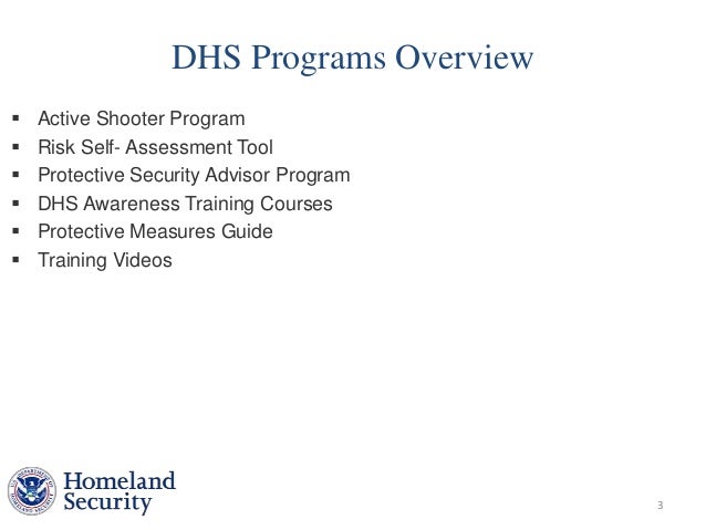 Department of Homeland Security Active Shooter Preparedness Workshop December 15, 2016 THIS IS NOT A TACTICAL TRAINING COURSE This workshop is presented in coordination with the Jewish Community Federation of ... Return Document